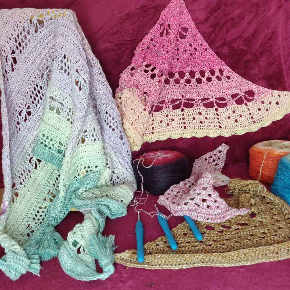 Es stehen verschiedene Modelle zur Auswahl. Wir werden alle Elemente der Tücher vorher üben und Proben häkeln. Danach kann das Modell ausgesucht werden welches am meisten Freude macht.